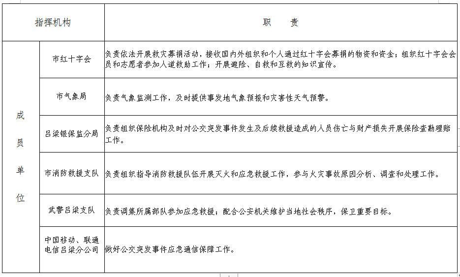 2.吕梁市城市公共交通运输突发事件应急指挥机构组成及职责
