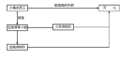 4.4.1当火情严重,为避免不必要的人员伤亡,也为消防队提供良好的扑救环境,应急小组应及时下达紧急疏散令,命令一切无关人员紧急撤离现场;