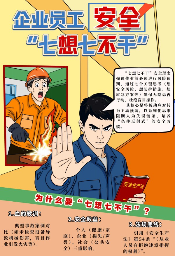 本挂图阐释企业员工安全作业 “七想七不干” 核心理念,解