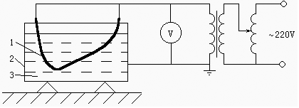 1-电极;2-试样;3-盛水金属器皿
